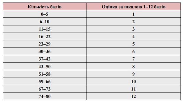 Також, Українським центром оцінювання якості освіти оприлюднена таблиця переведення тестових балів, отриманих учасниками зовнішнього незалежного оцінювання, у шкалу 1-12 балів.
