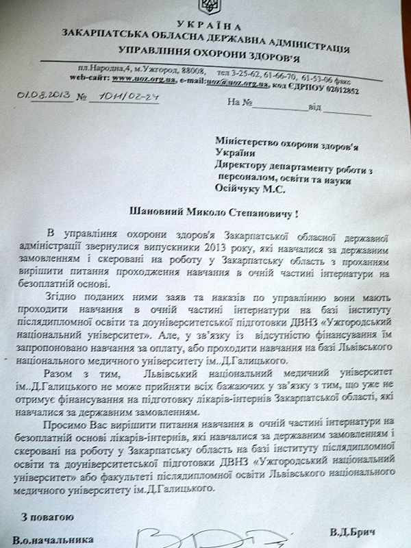Інтернів-бюджетників керівництво Ужгородського національного університету змушує підписувати заяви на контрактну форму навчання.