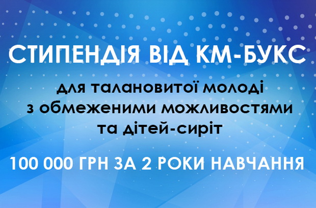 «Видавнича група КМ-Букс» оголошує конкурс на здобуття стипендії для талановитої молоді з обмеженими можливостями та дітей-сиріт, які стали абітурієнтами першого курсу вищих навчальних закладів України у 2018 році.