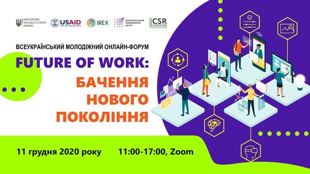 11 грудня 2020 року молодь з усієї України запрошують узяти участь в онлайн-форумі «Future of Work: бачення нового покоління». Інтерактивний форум, присвячений темі роботи майбутнього, збере разом топ-менеджерів, експертів провідних компаній та молодь, щоб вони поділились власним баченням роботи і працевлаштування в Україні через декілька років.