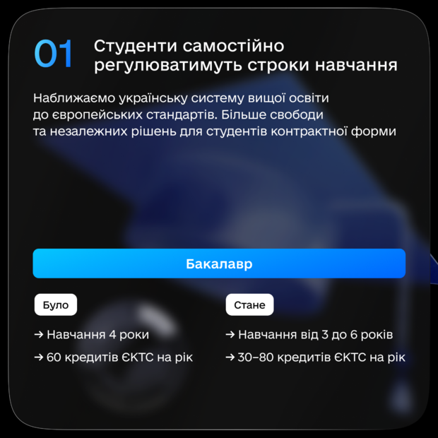 Зміни до законодавства дадуть змогу оптимізувати роботу закладів вищої освіти, зробити навчання більш ефективним, а також наблизити українську освіту до європейських стандартів. Загалом трансформація передбачає кілька суттєвих змін.