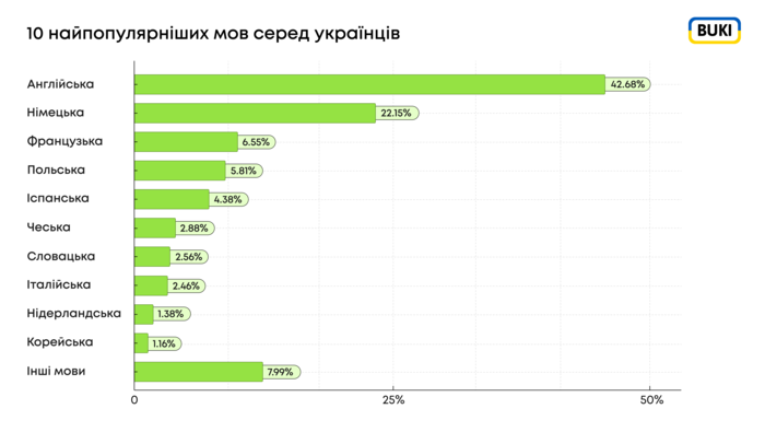 Які ж ще мови є популярними? Репетиторський ресурс BUKI знайомить вас зі своєю статистикою.