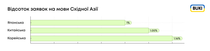 BUKI має таку статистику заявок на східні мови:
