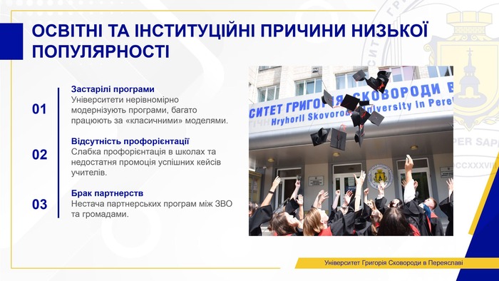 Молодь обирає спеціальності з високою мобільністю, міжнародними перспективами та мінімальним ризиком безробіття, що змушує педагогічні заклади вищої освіти змінювати стратегічні моделі та пропонувати сучасний освітній продукт.