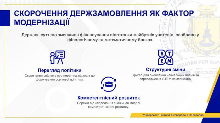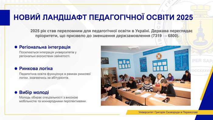 2025 рік став переломним для педагогічної освіти в Україні. Держава переглянула пріоритети, що призвело до зменшення державного замовлення з 7319 до 6800 місць. Водночас університети виявили спротив і адаптацію, посилюючи інтеграцію в регіональні екосистеми зайнятості.