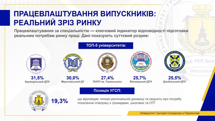 Позиція УГСП – 19,3% працевлаштованих – відповідає типово регіональній динаміці та свідчить про потребу посилення співпраці з громадами, школами та об’єднаними територіальними громадами.