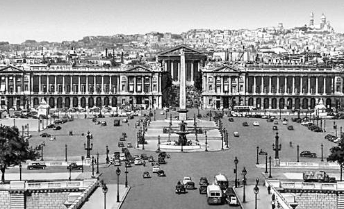 Праворуч, у перспективі вулиці Ройяль велично здіймаються колони портика Мадлен; ліворуч, за Сеною, відкривається широка панорама Парижа, а прямо аж до великої тріумфальної арки на площі Зірки (зараз вона називається площа де Голя) тече вгору суцільним потоком по Єлісейських полях діамантова ріка вогнів автомашин.