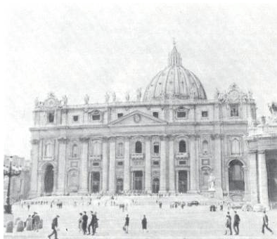 При цьому з площі вид на купол було закрито високим аттиком, а самі форми прибудови виявилися настільки немасштабними, що собор здавався меншим, ніж був насправді. Це враження певною мірою було усунуте завдяки вдалому розплануванню площі перед собором у 1656-1667 рр. великим архітектором стилю барокко Лоренцо Берніні.