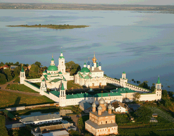 Ще за десять кілометрів від Ростова на горизонті даленіє силует казкового міста. Чим ближче під'їжджаєш до нього, тим вище здіймаються сріблясті верхи численних веж, куполів, палат. У центрі міста стоїть величний п'ятибанний Успенський собор, збудований у XVI ст. Поряд з ним — дзвіниця новгород-псковського типу у вигляді високої видовженої споруди з арками у верхньому ярусі, де висять знамениті ростовські дзвони.
