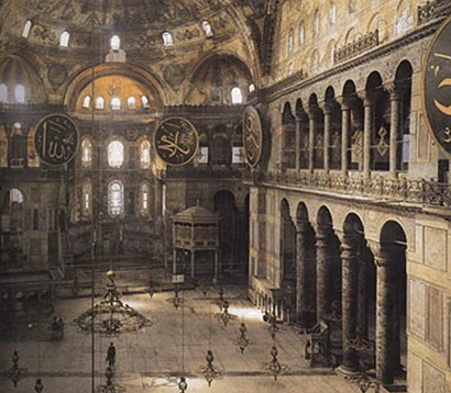 Пишнота цього грандіозного складного інтер'єра уражало сучасників, а візантійські архітектори не зважувалися надалі суперничати з цим пам'ятником: Софія залишалася недосяжною вершиною, від якої вели відлік, але до якої не зважувалися наблизитися.