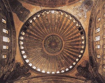У Софії Константинопольській ми зустрічаємося з тією крайньою фазою архітектурної думки, що при створенні сакрального простору бачить храм тільки зсередини, а його оболонку розглядає як матеріалізовану метафору небес.
