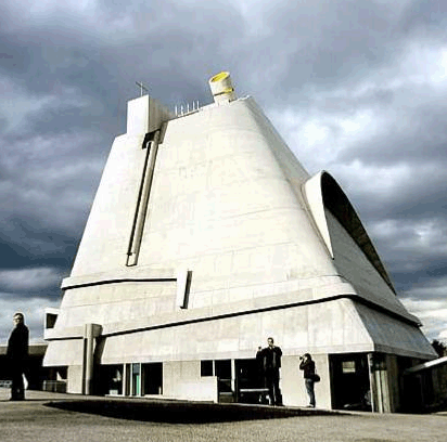 Зовсім новою сторінкою у творчості Ле Корбюз’є стала капела Нотр-дам-дю-о в Роншані, над створенням якої він працював з 1950 до 1954 року. Тут майстер уперше застосував пружно вигнуті площини несущих стін, над якими як би злітає, утворюючи величезні навіси, також криволінійне перекриття з монолітного залізобетону.