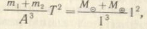 де m1, і m2- маси компонентів у парі зір, M© і МÅ - маси Сонця й Землі, а Т - період обертання пари в роках. Нехтуючи масою Землі порівняно з масою Сонця, дістанемо суму мас зір, які становлять пару, у масах Сонця:
