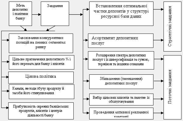 - формування мети і завдань депозитної політики;