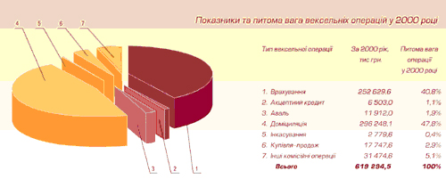 Рис. 2. Показники та питома вага вексельних операцій у 2000р.