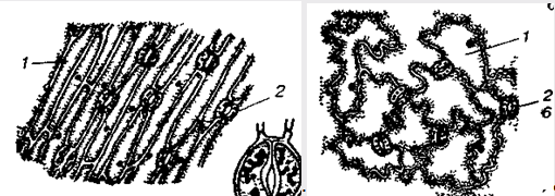 Мал. 1. Покривна тканина: а, б — епідерміс відповідно однодольної І дводольної рослин.