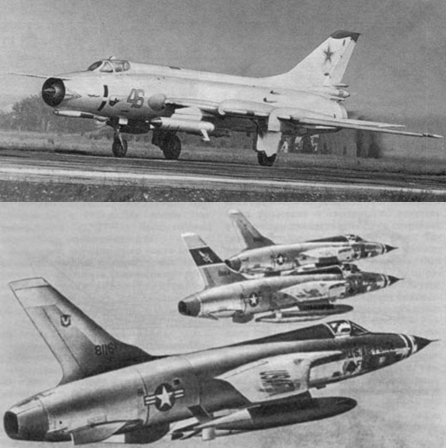 Надзвукові винищувачі-бомбардувальники стали серйозною проблемою для ППО сухопутних військ, що виявило нагальну потребу в удосконаленні існуючих та винайдення нових засобів протиповітряної оборони: ліворуч - радянський винищувач-бомбардувальник ОКБ Сухого Су-17; праворуч - американський винищувач-бомбардувальник МС Donnel Douglas F-105 "Thunderchief".