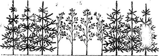 Схематичний профіль дубово-ялинової культурі; створеної за кулісним способом змішування.