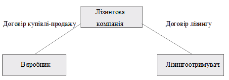 - Лізингова компанія (лізингодавець), ставши власником устаткування, передає його в тимчасове користування з правом подальшого викупу (визначається договором) лізингоотримувач, одержуючи замість лізингові платежі.