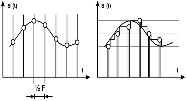 На рис. 1 показаний процес цифрового подання інформації квантуванням за: а) частотою і б) амплітудою.