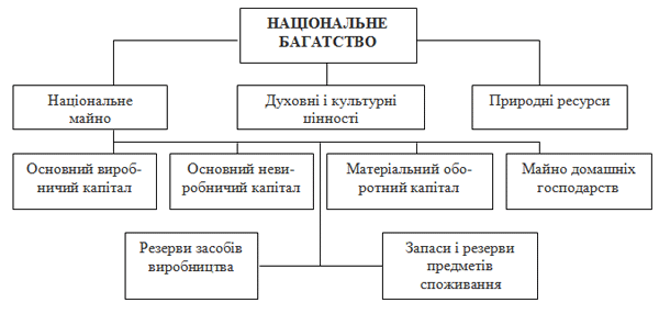 Уявлення про структуру національного багатства дає схема, зображення на рисунку.