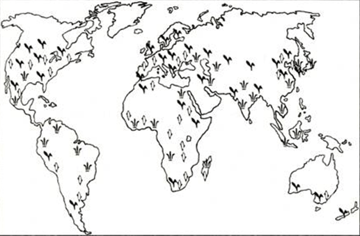 Рис. 2. Основні райони вирощування зернових культур у світі.