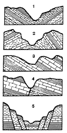Морфологічні та генетичні типи річкових долин. Особливості геологічної будови місцевості та історичні умови формування річкових долин зумовлюють їх індивідуальність і неповторність, яка насамперед простежується через форму поперечного профілю долини.