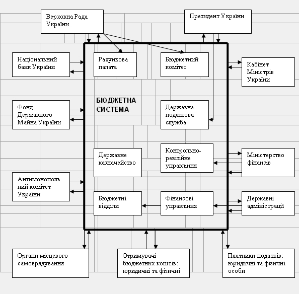 Як видно з наведеної схеми, бюджет є складовою частиною фінансової системи, маючи зв'язки з іншими частинами — страхуванням, фінансами підприємств.