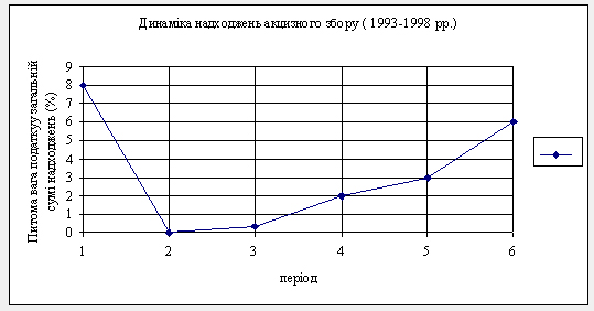 Динаміка надходжень акцизного збору в період з 1993 по 1998 рік досить різноманітна (Графік 6).