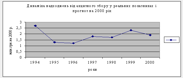 Вважаємо також неправомірним прогнозування на 2000 р. обсягів акцизного збору на підставі досягнутого рівня збору в поточному році.
