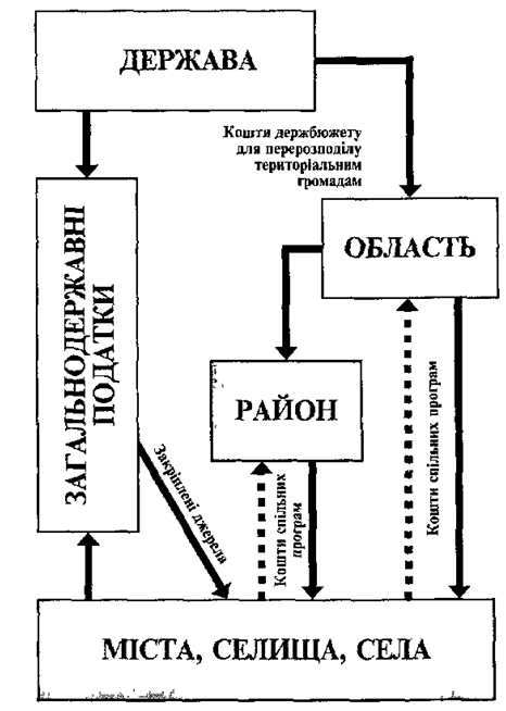 Виходячи із цих особливостей (частина 2 ст. 143 Конституції) бюджети територіальних громад (міст, селищ, сіл) можуть формуватись від певних податків загалом або частин окремих загальнодержавних податків. Усі інші загальнодержавні податки мають формуватись на державному рівні і вже із нього повертатись на обласний рівень для подальшого розподілу між районами та містами обласного підпорядкування. Ні Верховна Рада, ні обласні (районні) ради не мали права встановлювати нормативи відрахувань від загальнодержавних податків на обласний, районний чи міський рівень.