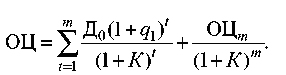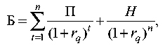 Отже, ми визначили вартість акції як нинішню вартість майбутнього потоку доходів інвестора. Аналогічний підхід використовуються і для оцінювання вартості боргу. Якщо підприємство одержує позику, зобов’язується виплачувати інвестору постійний щорічний прибуток П і погасити через п років суму Я, то нинішню вартість боргу Б можна визначити так: