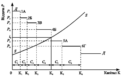 Рис. 2.Східчаста крива формування попиту на капітал.