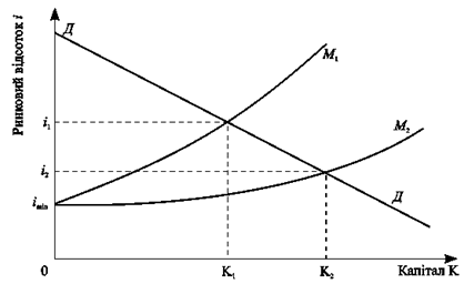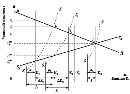 Рис. 4. Взаємодія попиту на капітал і пропозиції капіталу.