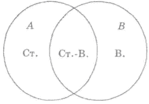 Наприклад, "студент" і "волейболіст". Графічно відношення цього типу зображується у вигляді двох кругів, які частково збігаються. Зображене на схемі можна передати такими трьома поняттями: "студент-волейболіст", "студент-неволейболіст" і "волейболіст-нестудент".