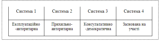 Лайкерт запропонував чотири базових системи стилю керівництва (рис. 2).