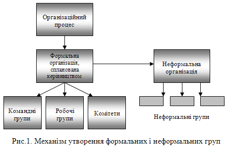 Відмінності механізмів утворення формальних та неформальних груп подано на рис. 1