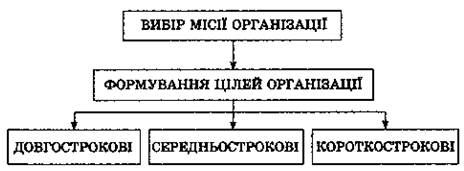 Цілі — це конкретний очікуваний стан організації. Вони бувають довгостроковими (5 і більше років), середньостроковими (1—5 років) і короткостроковими (до 1 року) (рис. 6).