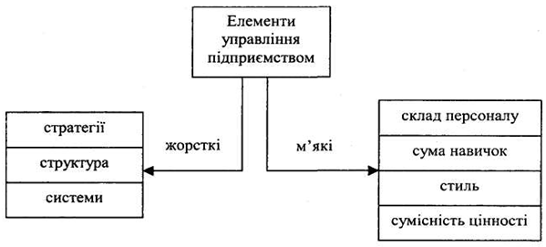 Елементи управління підприємством поділяються на жорсткі та м'які (рис. 2).