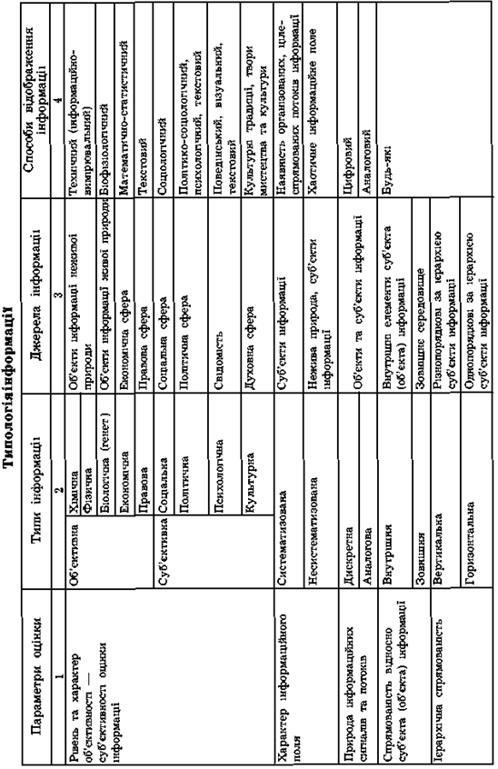 Якщо ви погоджуєтесь із запропонованим визначенням терміна інформація як змістовного відображення певних процесів, явищ і предметів, пропоную звернутися до табл. 1, в якій пропонується знову-таки авторська версія типології інформації.