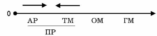 На цьому малюнку містяться такі позначення параметрів: "0" - початок відліку, нульовий рівень розвитку; "АР" - актуальний рівень розвитку здібності; "ТМ", "ОМ" і "ГМ" - відповідно, теоретична, органічна і, генетична межа розвитку здібностей; "ПР" - потенціал розвитку, дистанція між актуальним рівнем і теоретичною межею. Це і є зона перспективного розвитку здібностей, яка визначає фактичний рівень потенціальних можливостей людини: