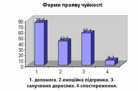 Тобто, обізнаність старшокласників з моральною категорією "чуйність" є теоретичною, а не практичною, оскільки в реальному житті діти не так часто виявляють співчуття, як можуть говорити про нього.